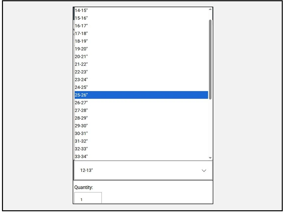 Select the appropriate size Sheet Pan Organizer based on your width measurement. The drop-down menu for size shows ranges in inches (“).