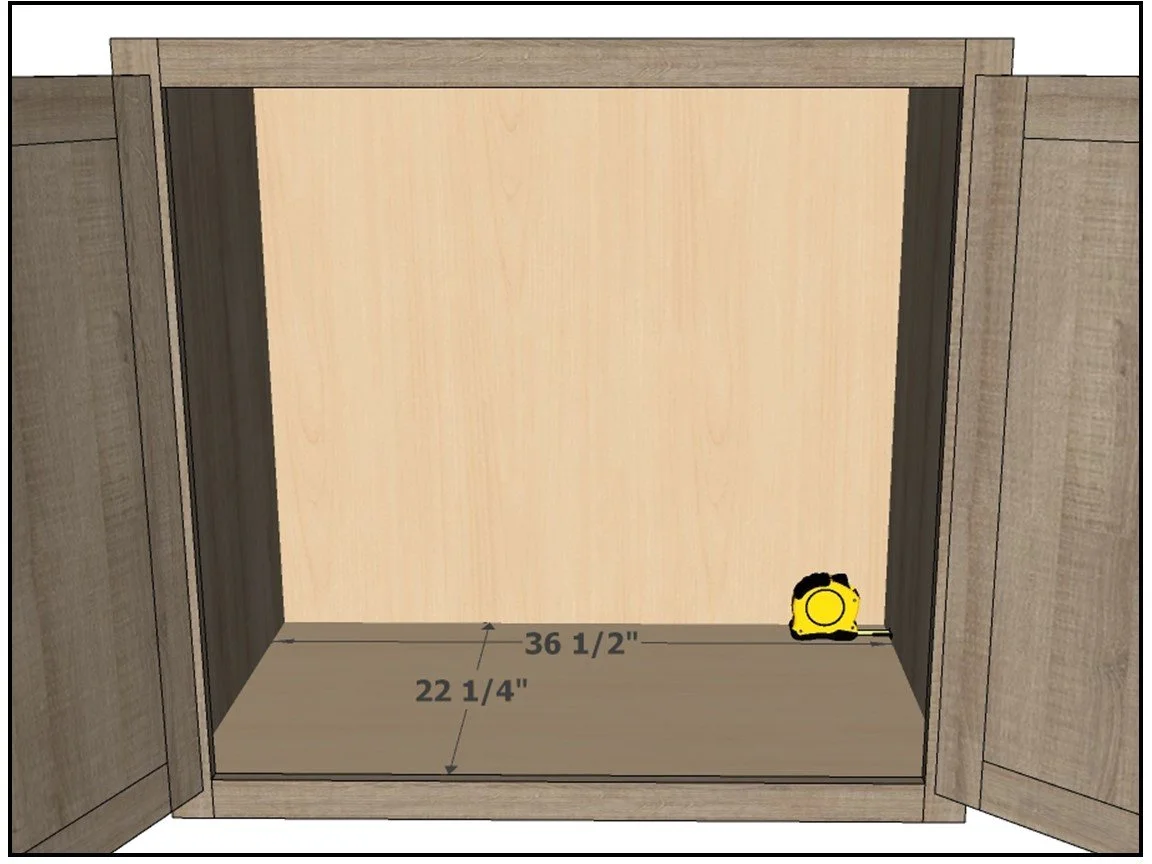 2: Depth: Measure inside your cabinet from back to the front. If your cabinets have a face frame like is shown in the picture above, measure to the back edge of the face frame.